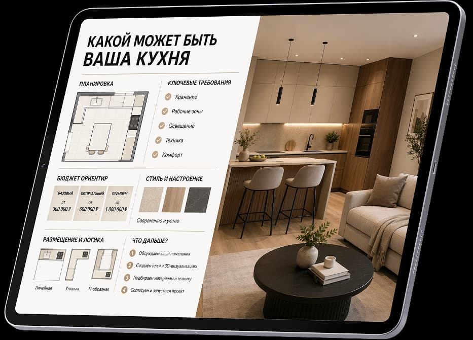 Превратим ваш рой мыслей о кухне в чёткий план: что возможно, что важно и с чего действительно стоит начать.